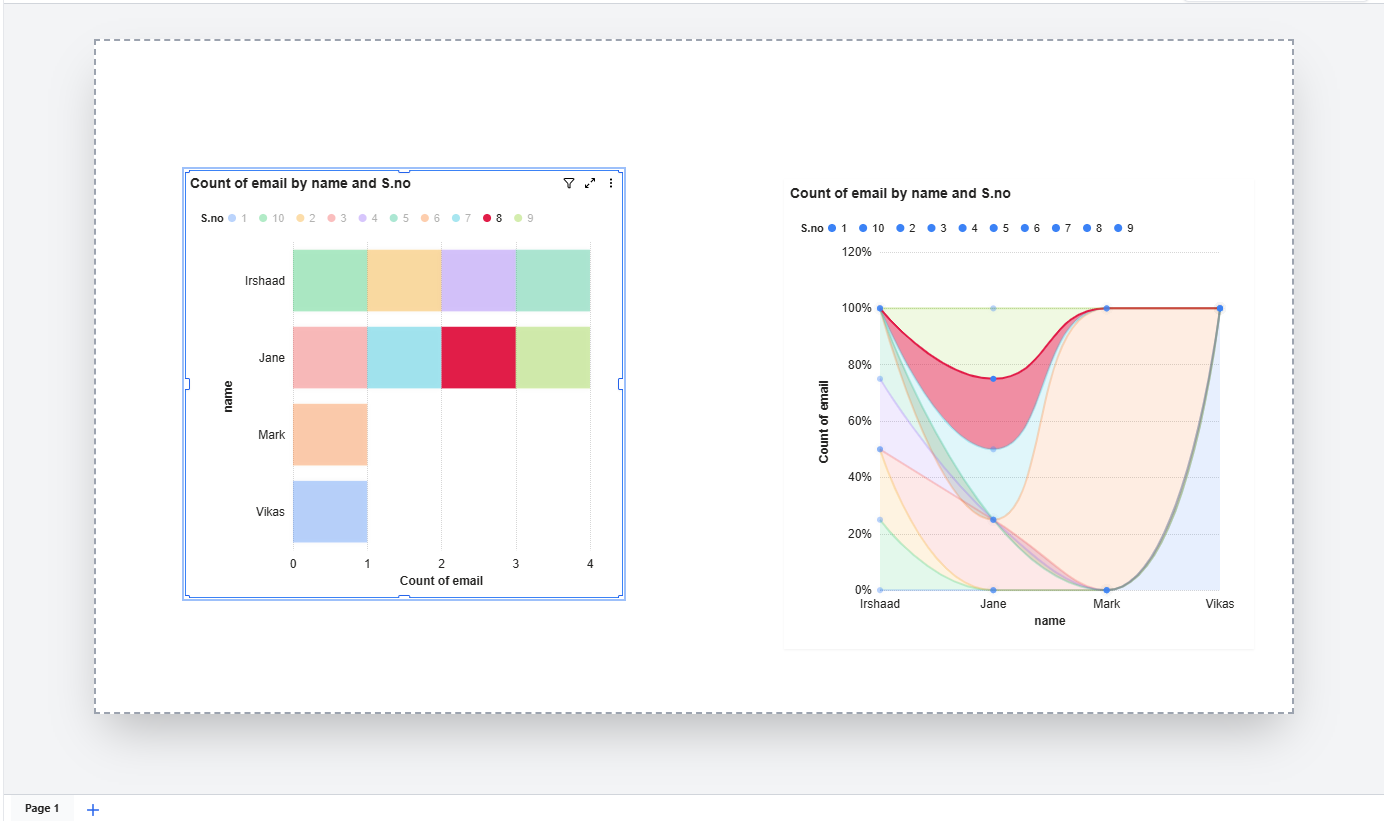 In the Visualization section → Row, the Charts activation and Legends activation options are not functioning independently. When a user clicks to activate one option (either Charts or Legends), the other option automatically becomes disabled or deactivated.