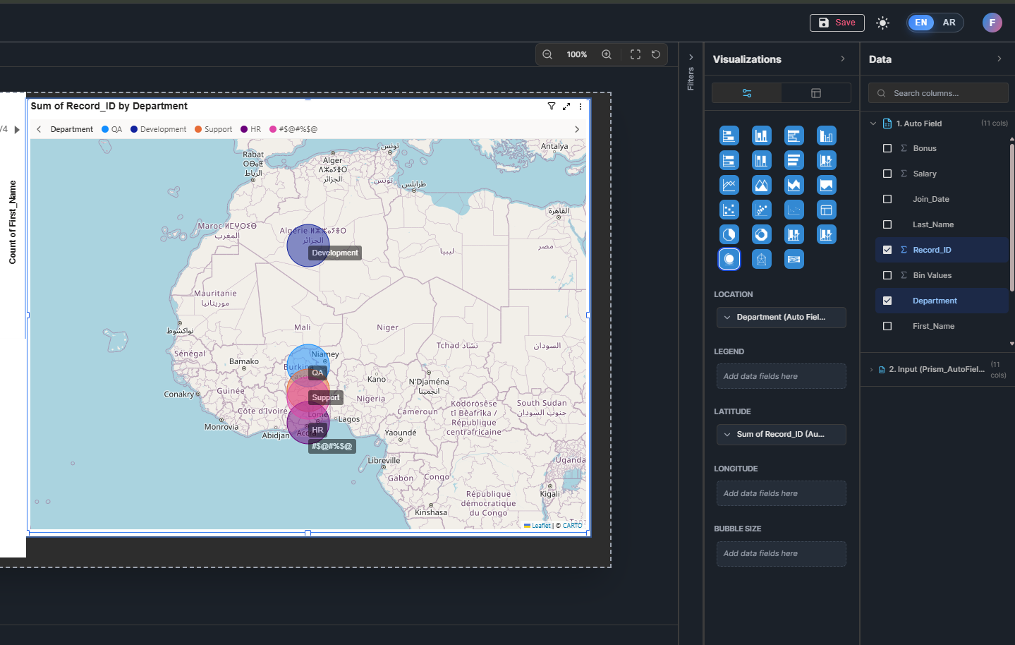Resolved - Visualization- Map chat shouldn't showing any result until the data set is accurate. Make sure data should be have the valid geographic coordinates as you can see the pictures.