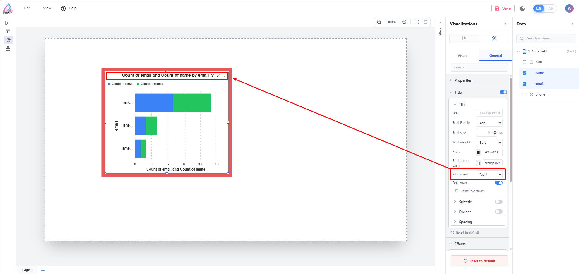 Resolved - While moving the chart title to the right it getting cutting off at the back of the header options.