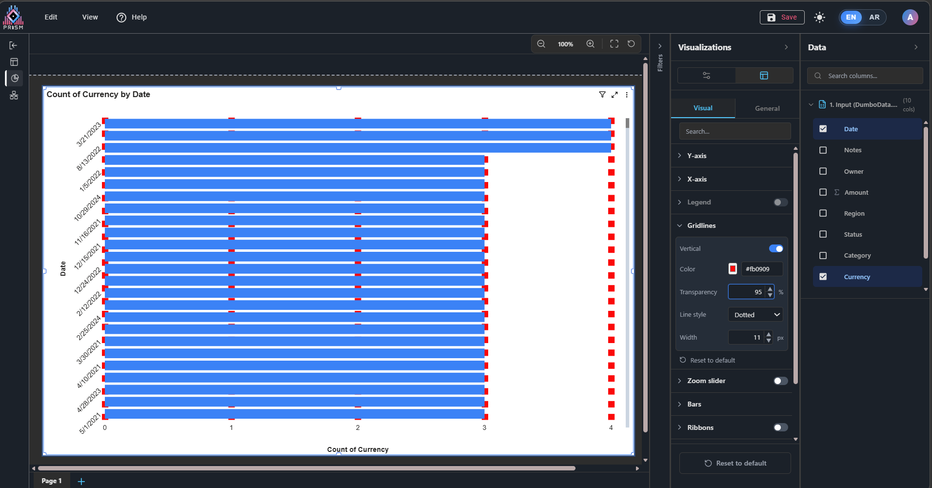 1. In Grid Lines, when setting the transparency to 95 and changing the color to red, the setting does not apply as expected.