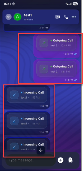 The app currently displays only Incoming Call and Outgoing Call statuses in chat. However, it does not reflect the actual call state, such as missed calls, ongoing calls, or completed calls with duration. This results in poor user clarity and incomplete call information.