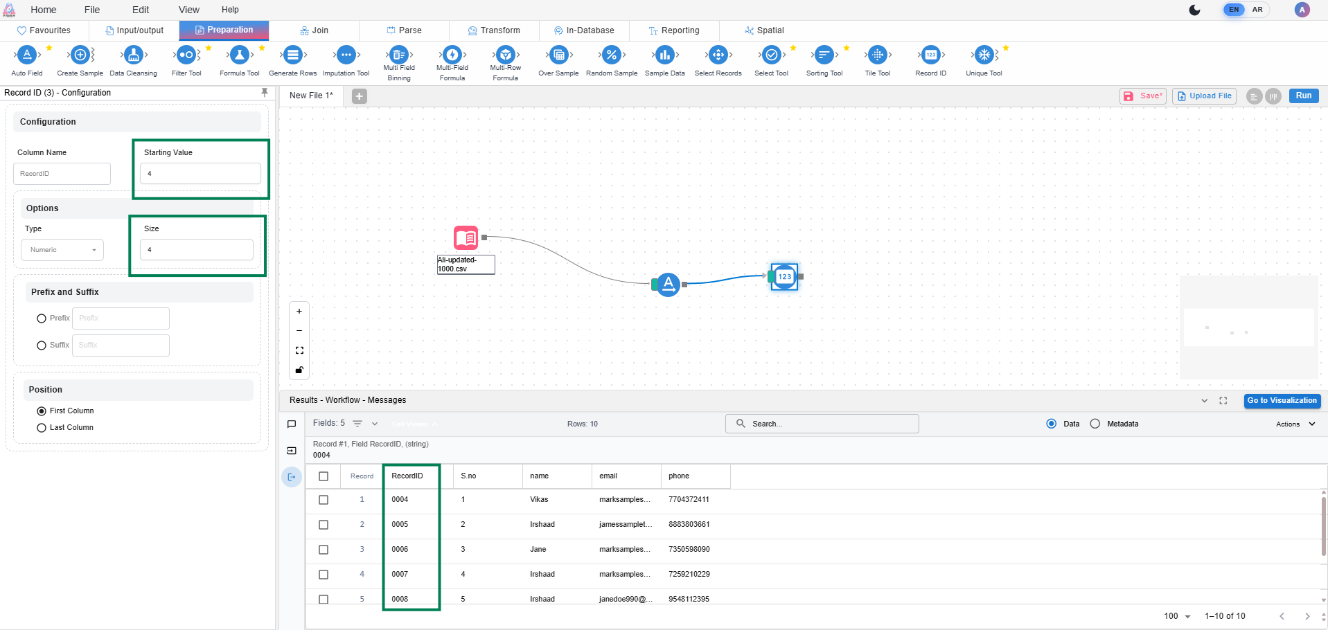 We resolved an issue in the Record ID formatting behavior where the configured Size was not consistently applied for numeric values. Previously, increasing the size did not add leading zeros unless a prefix was also provided, which caused outputs like 1 instead of the expected padded format. This has now been corrected, and the Size setting is applied consistently in all cases. As a result, numeric Record IDs now display in the intended format (for example, 0001 instead of 1) based on the selected size.