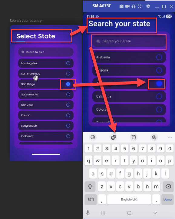 openIssues in State dropdown on Address screen (incorrect heading, auto-focus, and UI mismatch)