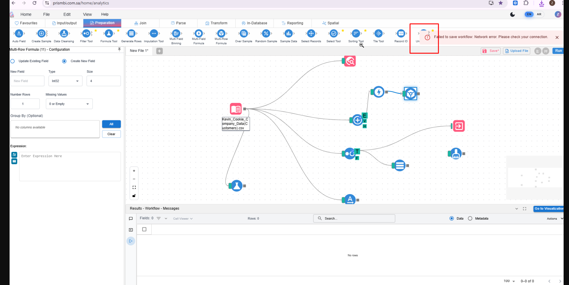 The error message is being overlapped with unique tool