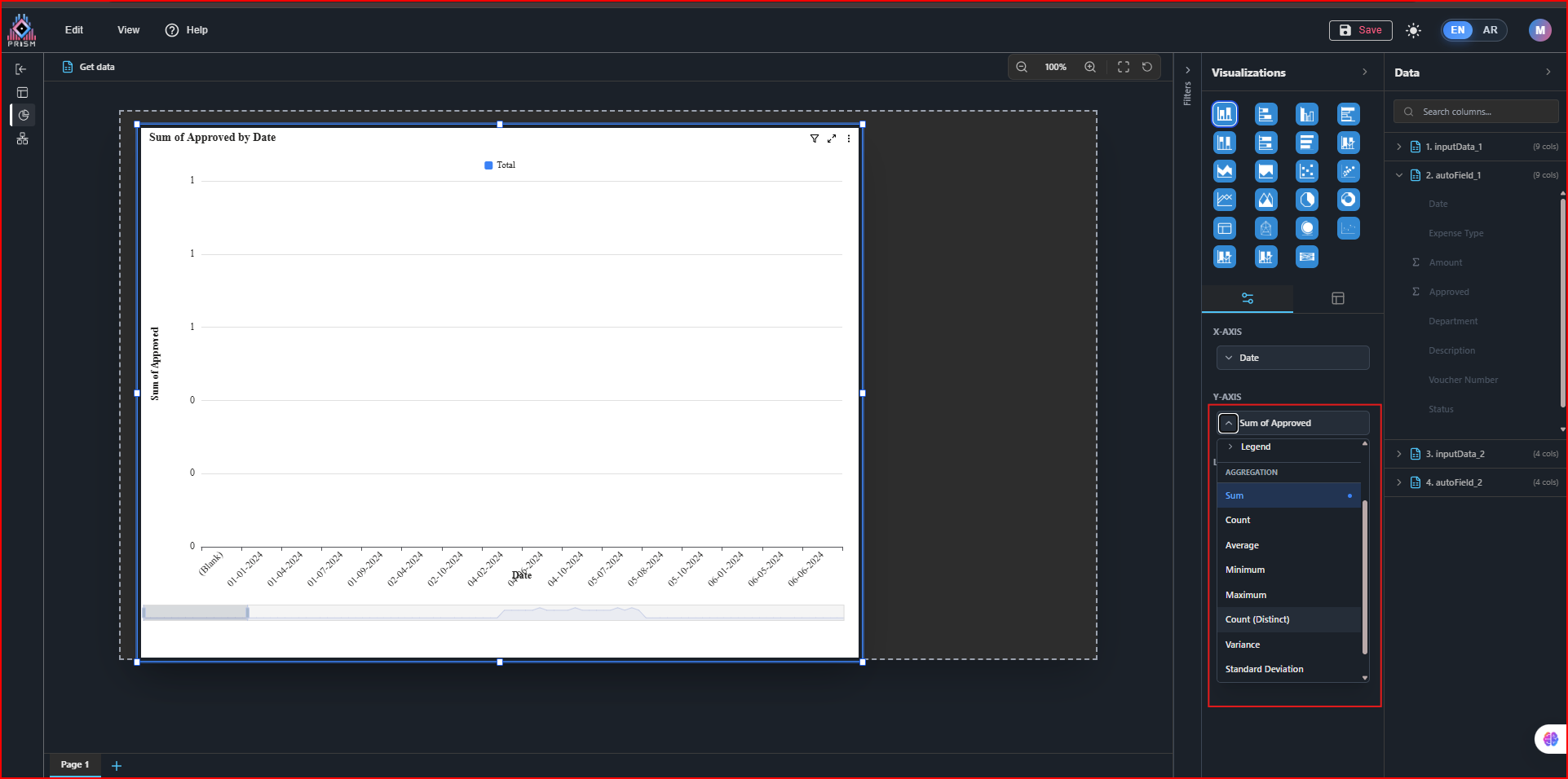 - Only valid aggregation functions are available: Count, Count Distinct