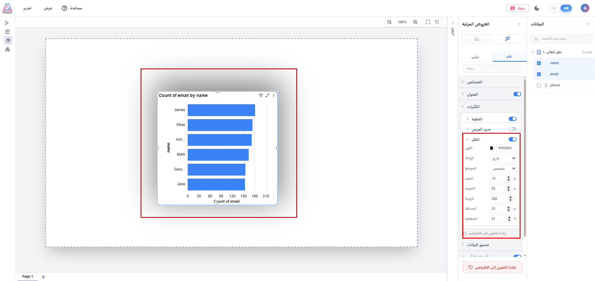 Add the custom option in the shadow section and now user add the styling for shadow as per requirements. and these option should be working fine with both langs ar or en as well.