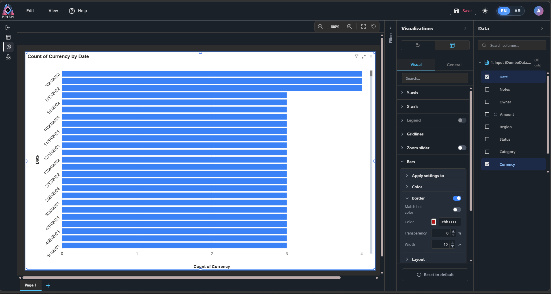 2. In Bars, the Border property does not function when enabled or when its settings are modified.