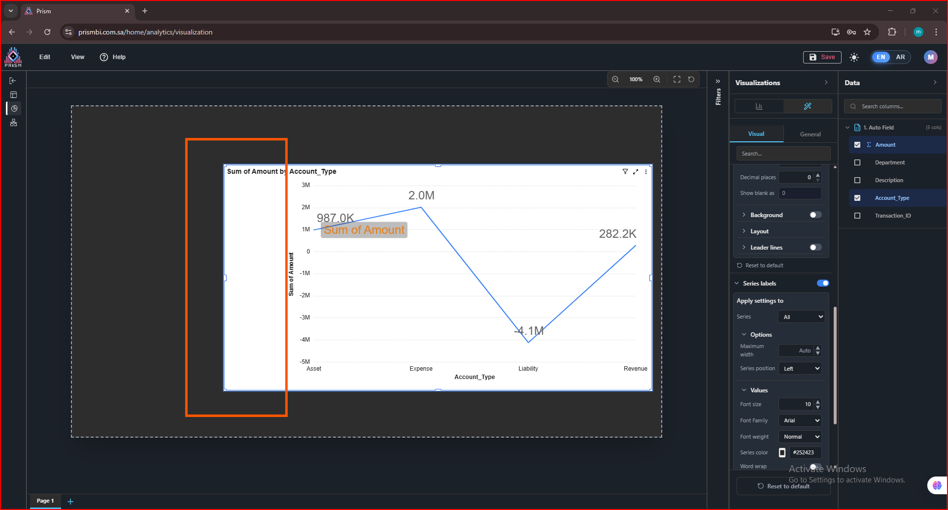 visual-----> series labels---> apply setting to ---> series---->select ALL from options----> options ----> series position ----> then select left from the option