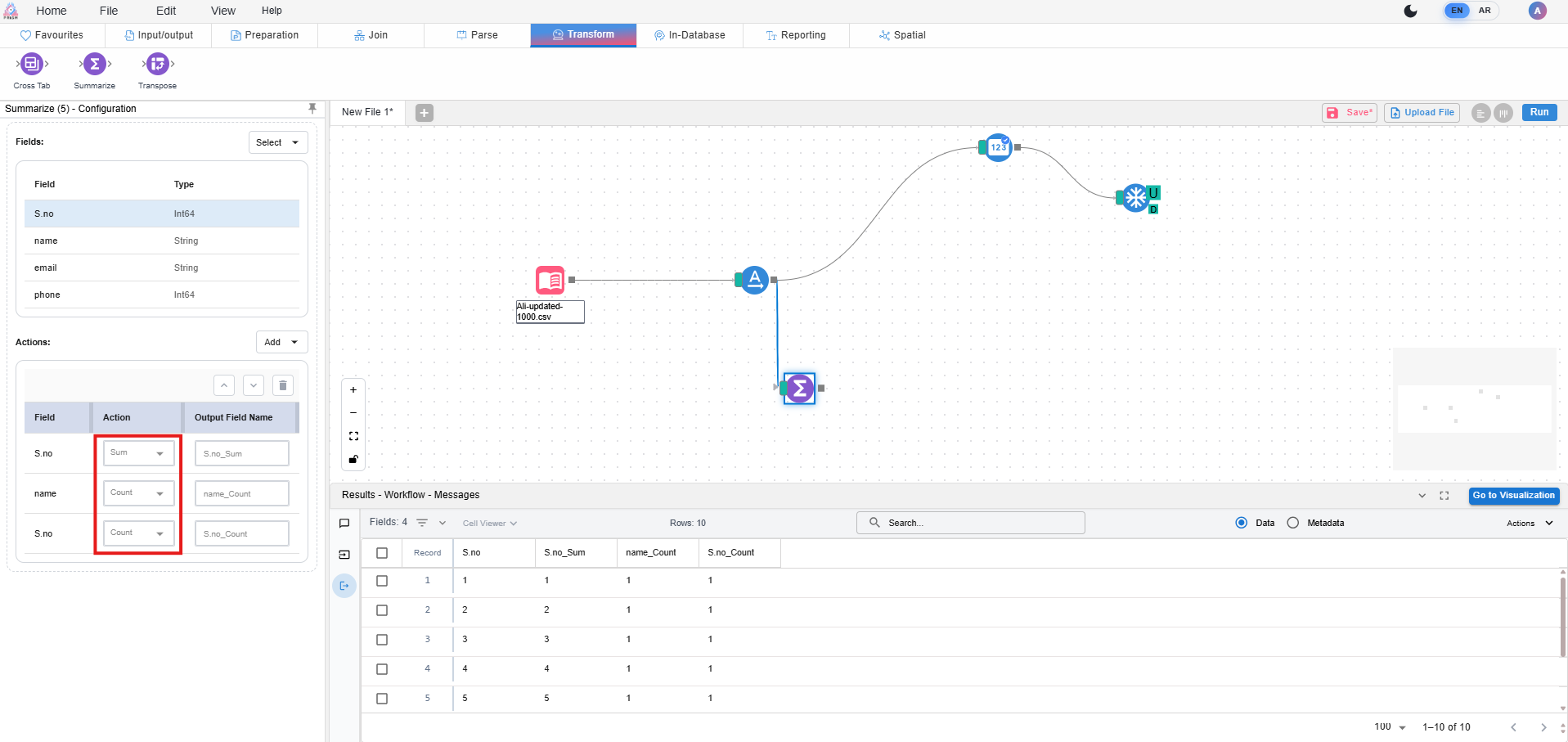 I've fixed an issue in the Summarize workflow where a previously selected “Group By” field could still be sent in the request even after the user changed that field to a different operation (like Sum).As a result, the system could apply grouping when it was no longer intended, which could lead to confusing or incorrect summarized output.