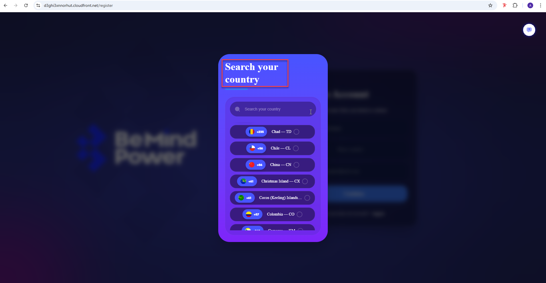 On the country codes screen, the text displayed above the search field is not appearing in a single line. Instead, it is breaking into multiple lines, which disrupts the layout and affects readability.