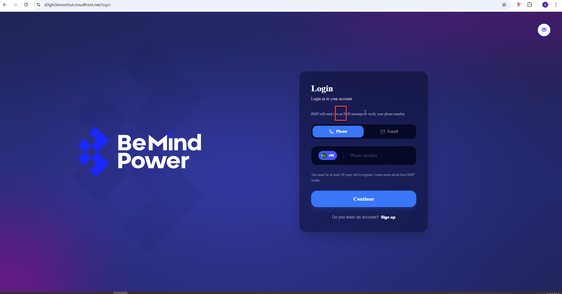 On the login page, the text contains a typo where β€œan” is displayed instead of β€œa”. This creates a grammatical error and affects the professionalism of the UI.