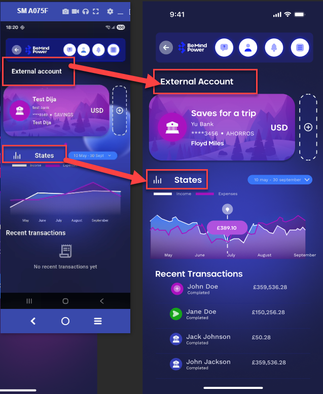 - Open External Account screen