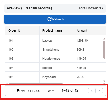 Header of sample data in input tool is disappeared while clicking on scroll down button.
