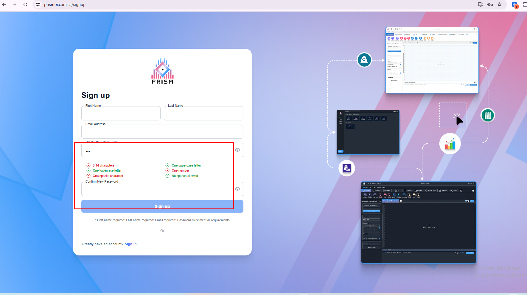 Password validations should show as the user starts typing. Right now, if a user starts typing, no validations show up but as soon as i click anywhere, the validations show up.