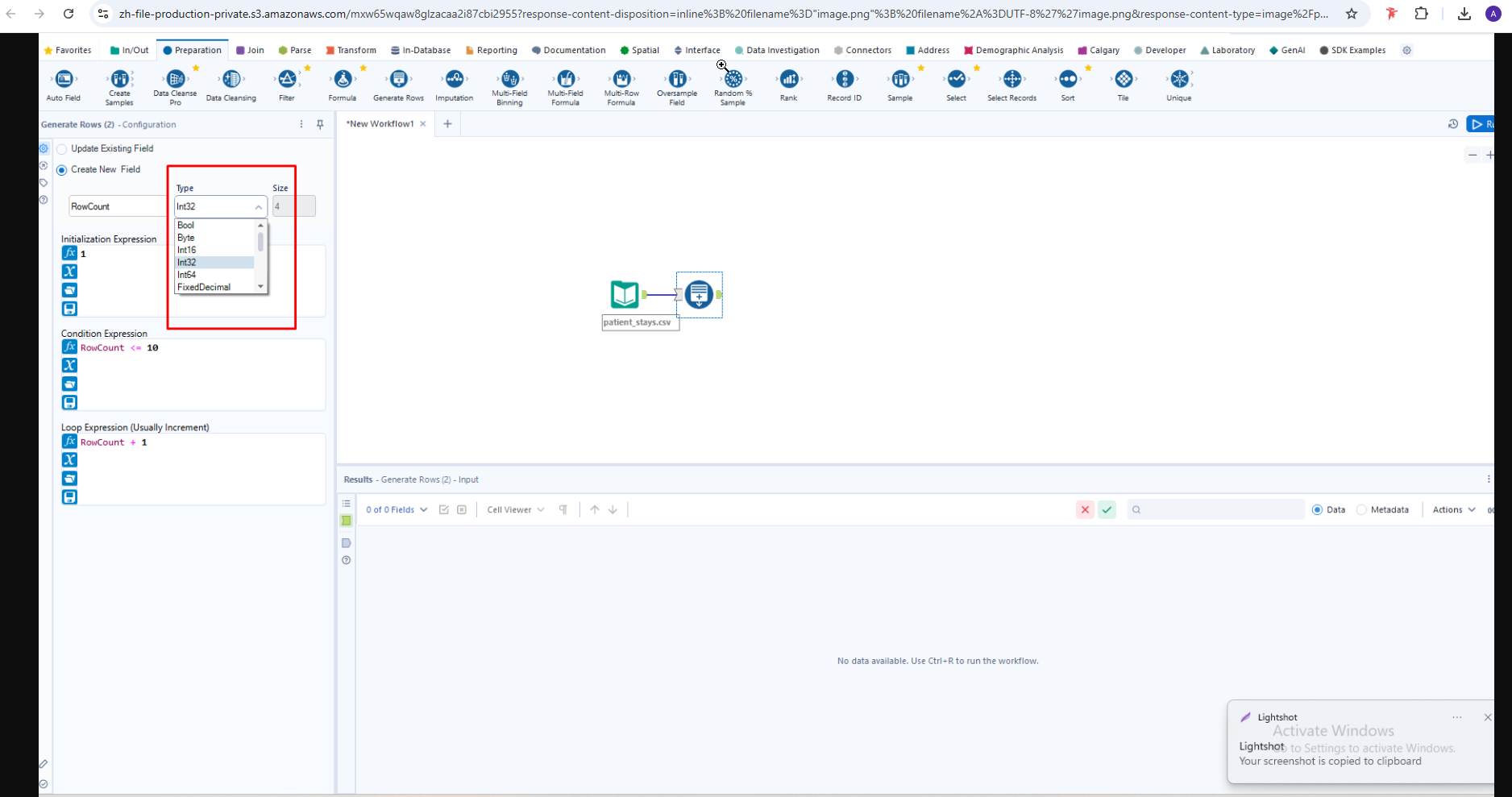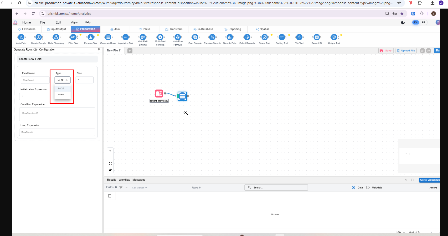 In prism we have only two data types to create new fields in generate rows tool but in alteryx, we have several data types