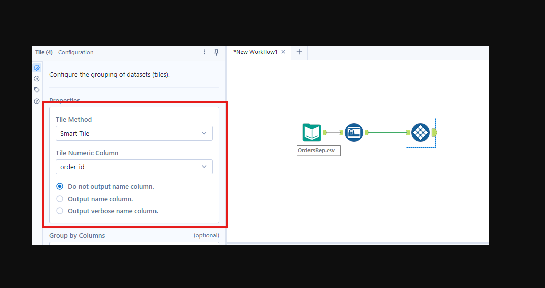 When we drag tile tool into canvas, its options should be selected as per alteryx