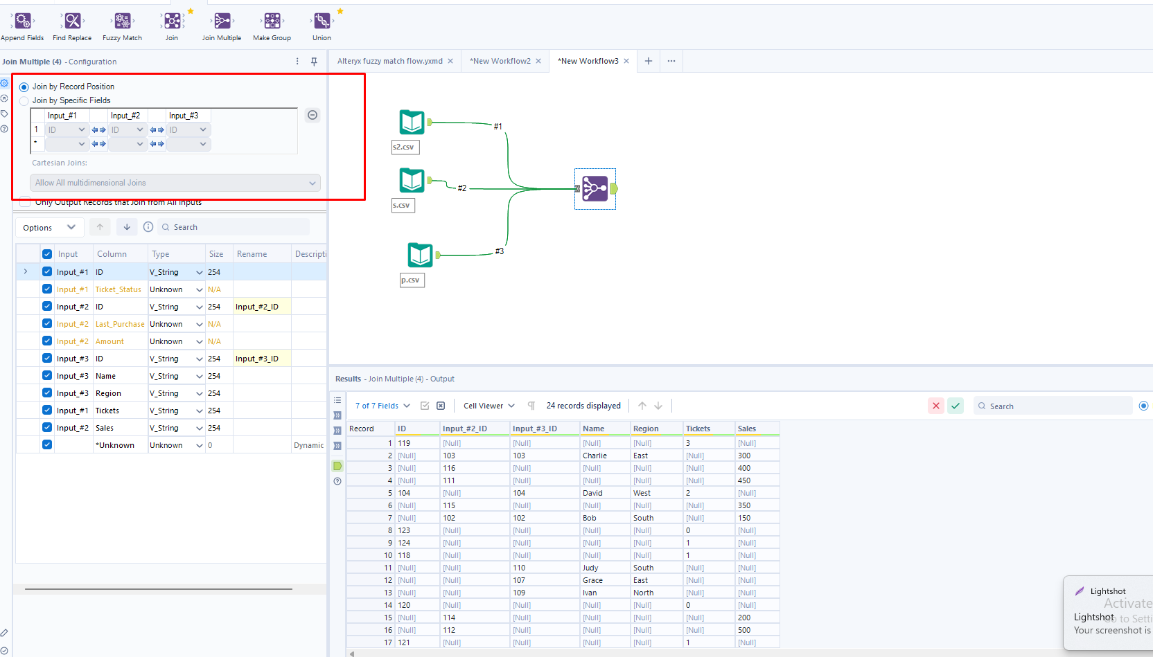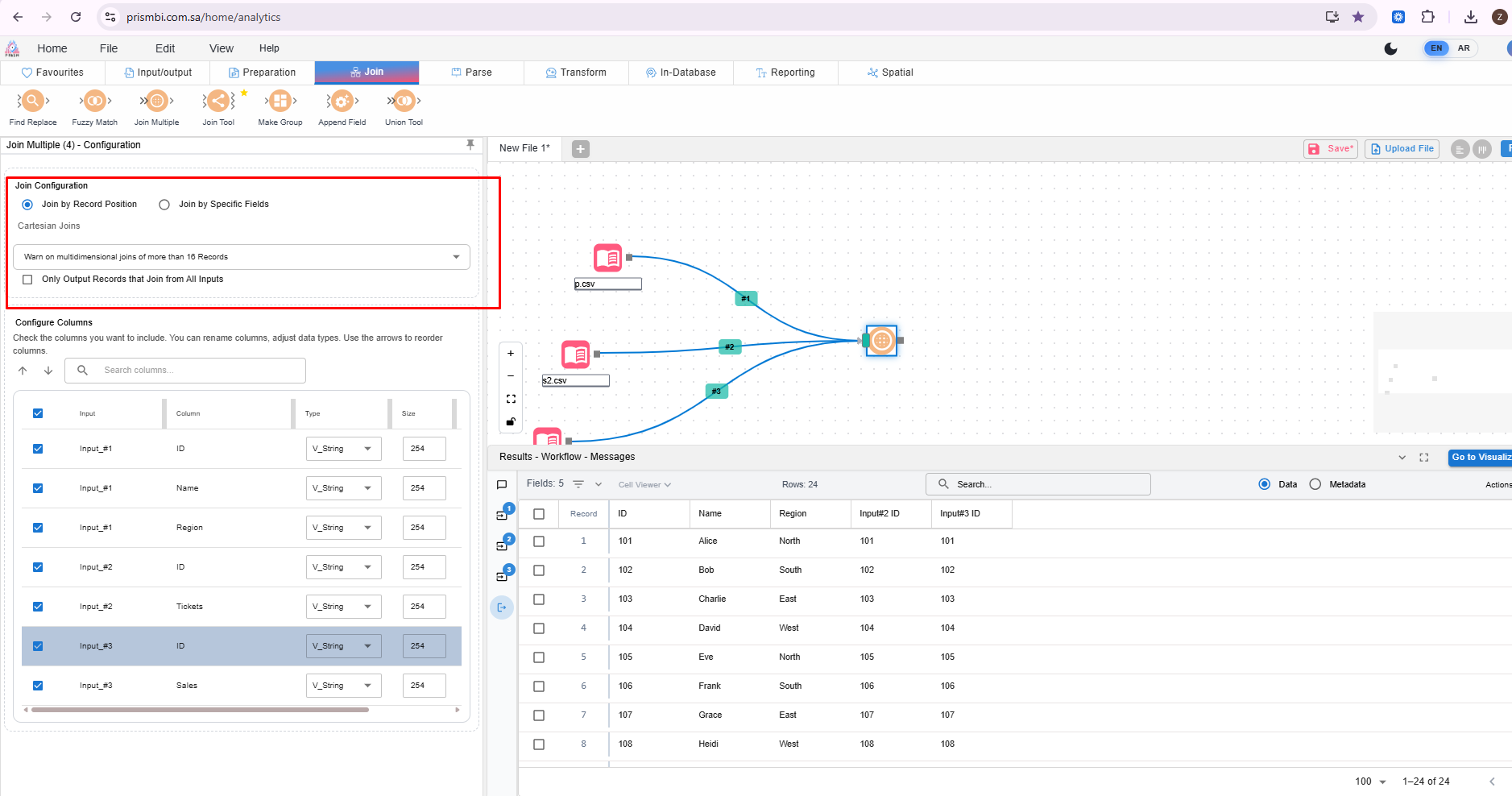 When i select 'Join by record position', the cartesian joins should be disabled as per alteryx.
