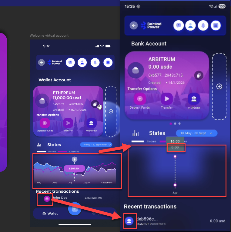 - In Recent Transactions, all transaction types (deposit, transfer, withdraw) are showing the same withdraw icon, instead of their respective icons