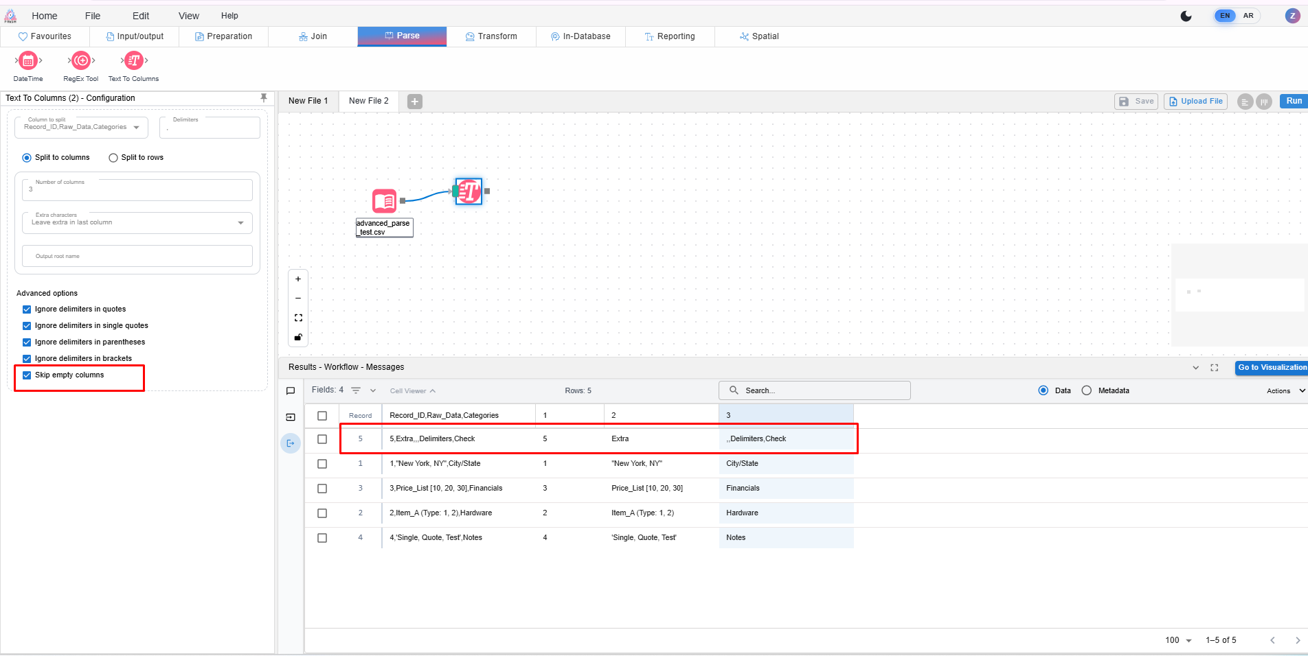 I selected the setting to ignore empty columns and show the data but its showing the empty columns in the output result.