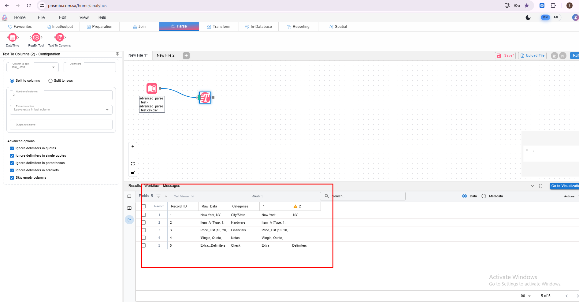 ected the setting to ignore empty columns and show the data but its showing the empty columns in the output result.