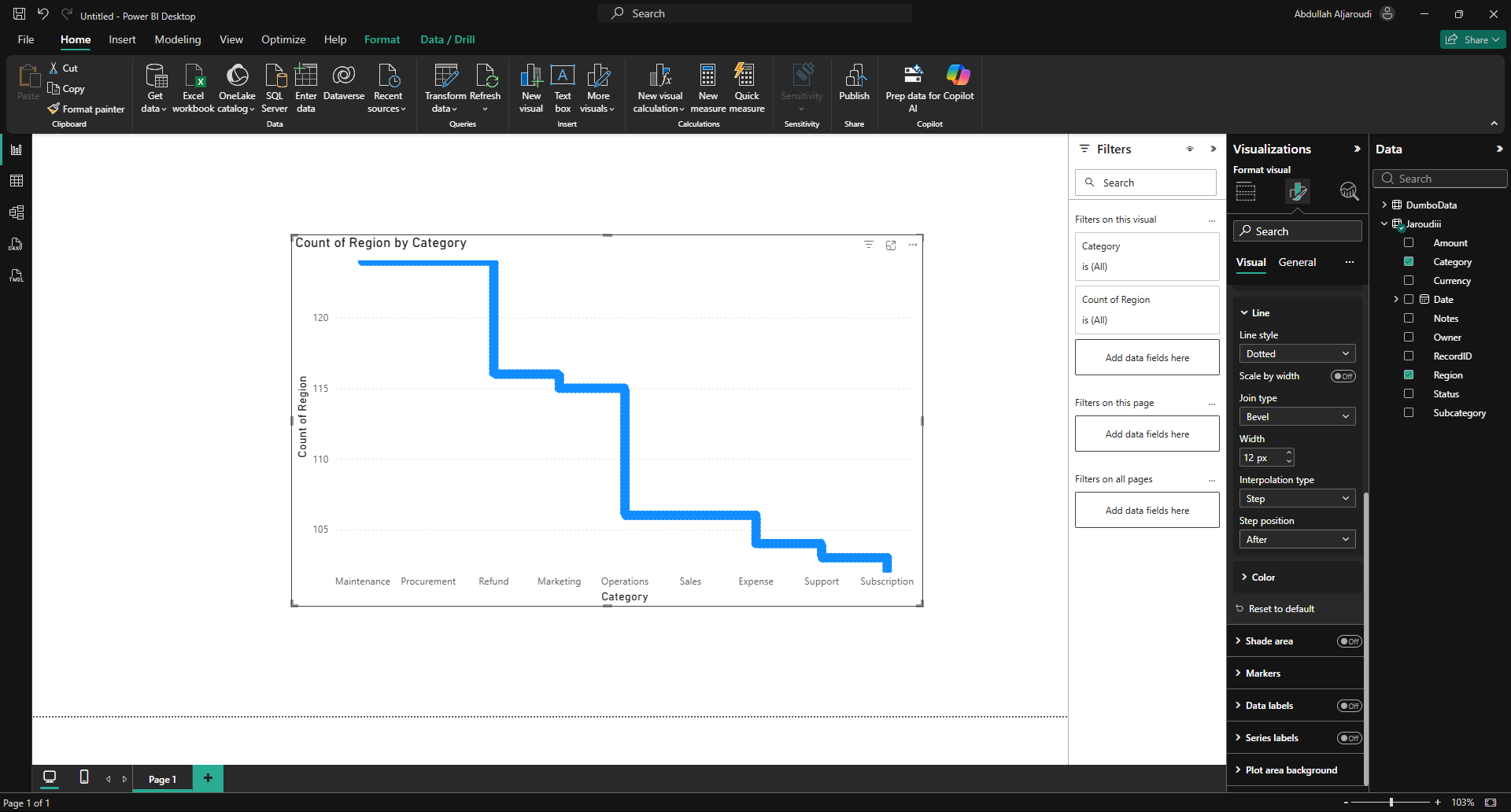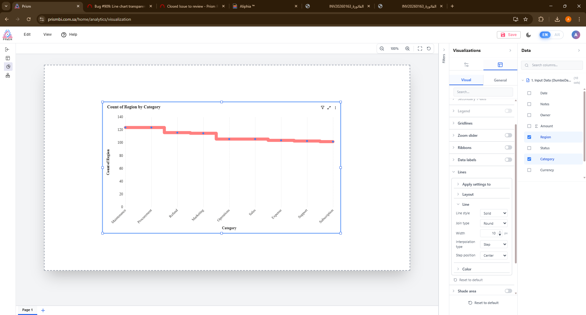 In Prism → Visualization Canvas → Chart Visual → Line section, the line color transparency option does not work as expected.